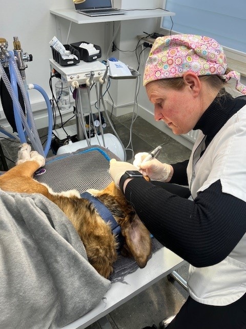 Bijvoorbeeld geven wij het advies om te beginnen met poetsen of een speciaal dieet of een gebitsbehandeling onder narcose. Soms is het duidelijk welke kies of tand er getrokken moet worden, maar vaak hebben we ook nadere informatie nodig over de tanden en kiezen. Daarvoor hebben we een speciale dentale röntgen, waarmee we duidelijk in beeld kunnen brengen welke elementen pijnlijk zijn.